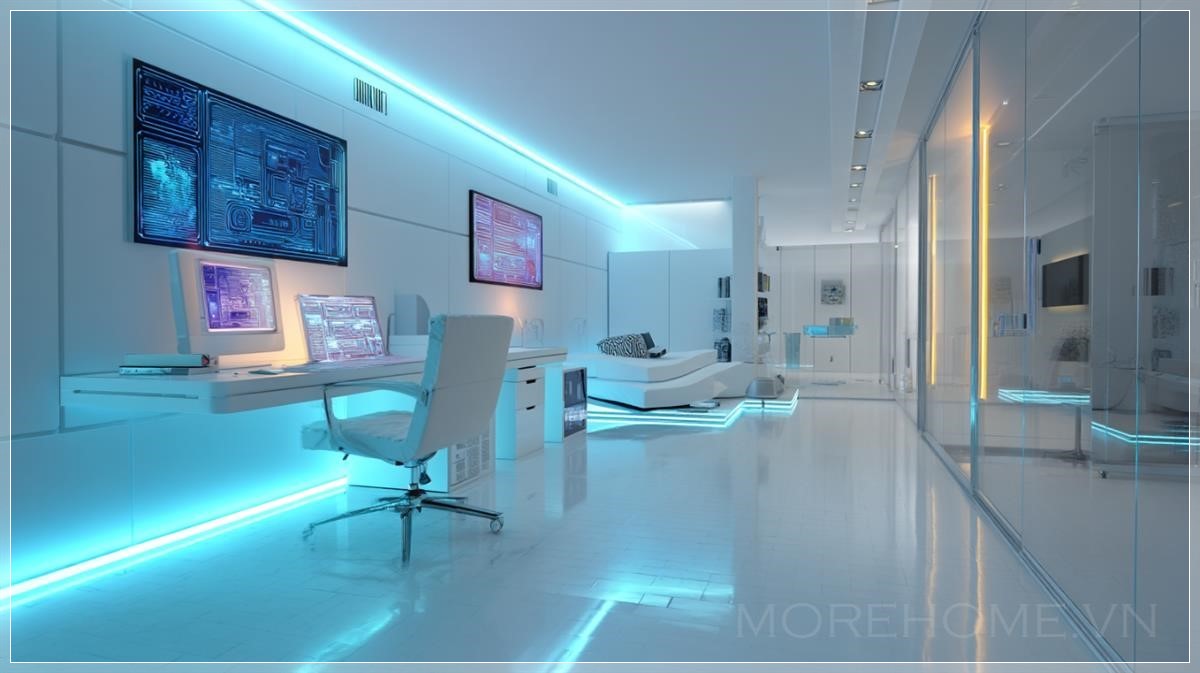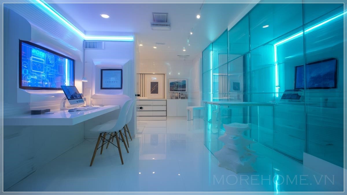 Có lẽ đây chính là điều mà chúng ta đang hướng tới - không phải một tương lai xa xôi và lạnh lẽo, mà một tương lai ấm áp và con người, nơi mà công nghệ phục vụ cho việc tạo ra những không gian làm việc không chỉ hiệu quả mà còn truyền cảm hứng. Và trong căn phòng trắng tinh khiết với ánh sáng xanh dương huyền ảo này, chúng ta có thể thoáng thấy một tương lai đang dần trở thành hiện thực.